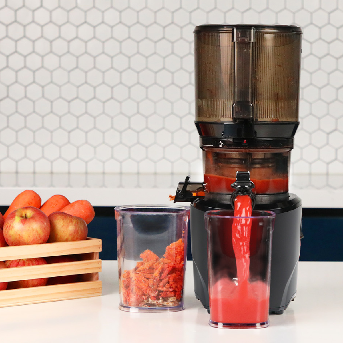 "Es el exprimidor "lento" más rápido que se ofrece y produce excelentes valores nutricionales. Tendrá que picar las verduras más frondosas, pero los resultados merecen el esfuerzo adicional."