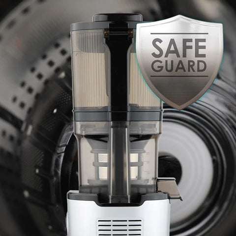 El sistema de bloqueo de seguridad garantiza que el exprimidor funcione solo cuando el cuerpo principal y el tambor estén correctamente ensamblados. Así, puedes usarlo con total tranquilidad y sin riesgos.