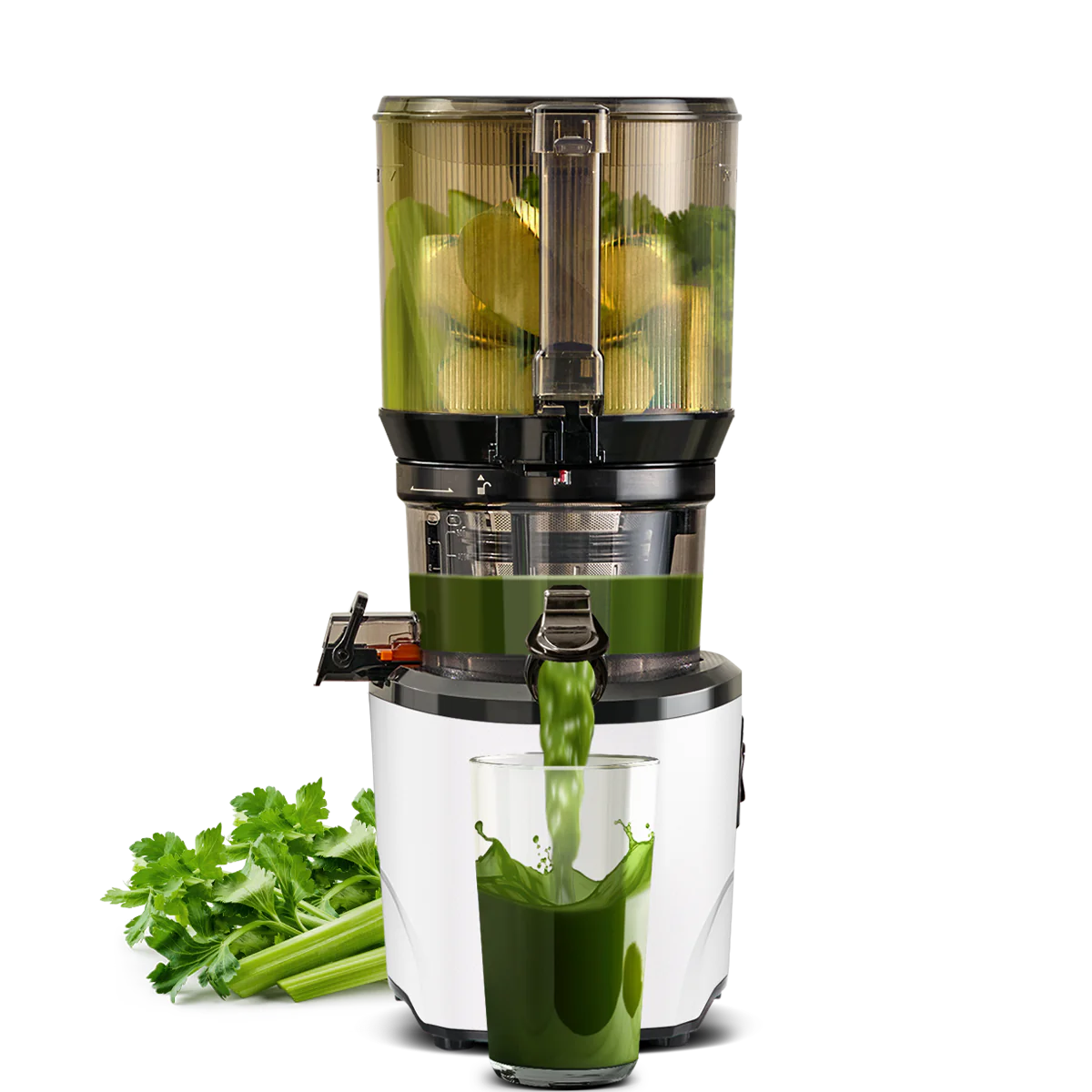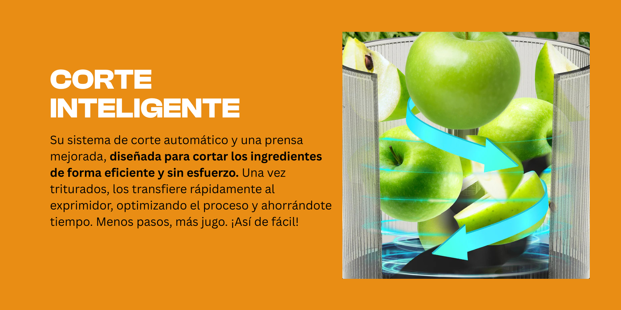 Su tecnología de corte automático y un tornillo mejorado, obtienes un jugo mucho más suave, sin esfuerzo y sin obstrucciones. Una experiencia más fácil, más limpia y con resultados deliciosamente sedosos.