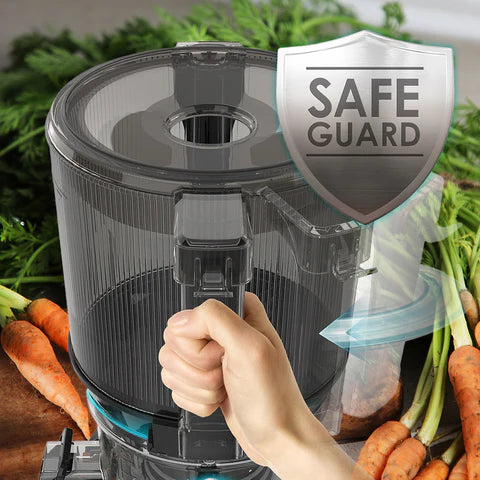 El sistema de triple enclavamiento garantiza que el exprimidor no se pondrá en marcha hasta que todas las piezas estén correctamente alineadas y aseguradas. Así, puedes usarlo con total confianza, sabiendo que tu seguridad es siempre lo primero.
