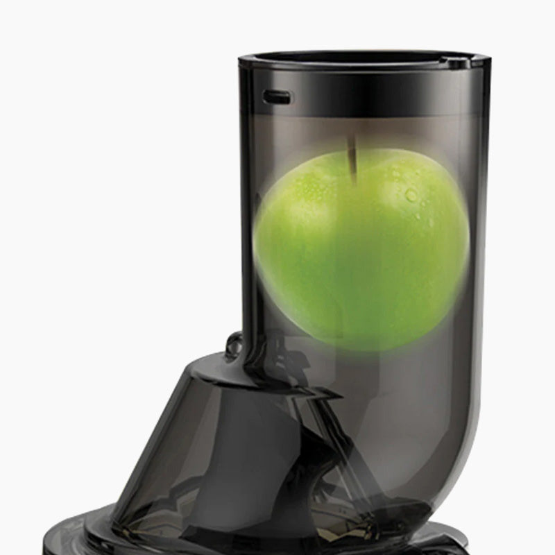Este producto tiene un diseño delgado que ahorra mucho espacio en la encimera. Además, la tolva translúcida permite ver cómo se exprime una manzana entera.